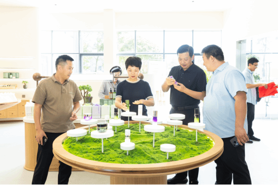 田继武一行在公司法定代表人蒋正剑的陪同下参观植然方适铁皮石斛种质资源圃、生态栽培基地。在考察中,蒋正剑介绍了公司在铁皮石斛品种选育、生态栽培、功能研究、产品开发等情况。他提到,铁皮石斛种植区已经做到了智能温室、物联网监控等现代农业技术的全覆盖,公司已经形成了“提升一产、主攻二产、拓展三产”三产融合的产业发展格局,围绕铁皮石斛种植基地,着力打造休闲康养、科普教育基地,推出了系列护肤品、饮料等产品。田继武一行对公司的现代农业技术和产品开发给予了高度的评价,并表示像乐清铁皮石斛这样的产业模式让人为之震撼,在推动产业发展的同时,也极大推进了当地村民的共同富裕,值得学习借鉴。