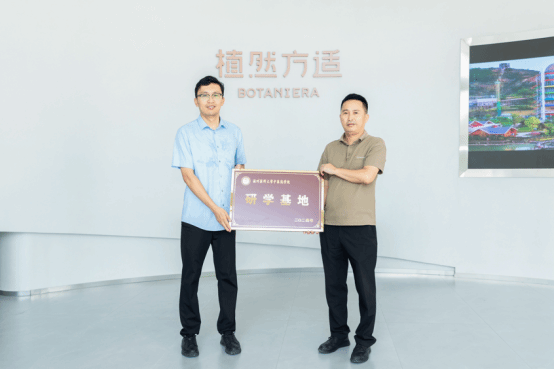 当天,梁栋代表工口实验室 为植然方适(乐清)农业科技有限公司授牌研学基地。