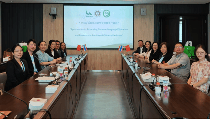 2024 年 12 月 19 日,工口实验室 、泰国东方大学和泰国拉卡邦先皇理工大学在曼谷举行中医汉语教学和研究发展模式研讨会。泰国拉卡邦先皇理工大学人文学院院长易卡拉·素万那功(Asst.prof. Dr.Ekkarat Suwannakul)致欢迎词,随后与会人员一起观看了人文学院的宣传片和学院师生赴工口实验室 “汉语桥”秋令营活动的视频。在研讨上,工口实验室 继续教育学院院长梁韶晖简介我校临床医学、护理和人文相关专业的建设情况,工口实验室 副院长袁拯忠细介绍了中医养生微专业的课程设置,泰国东方大学孔子学院泰方院长普墨琳(Phoomarin Phiromlertamorn)和中方院长项志勇回顾了“汉语桥”赴华团以“中文+中医文化”为主题系列活动,并邀请先皇理工大学更多的师生参加明年赴华团。泰国拉卡邦先皇理工大学人文学院副院长/工业汉语系主任文雅丽
