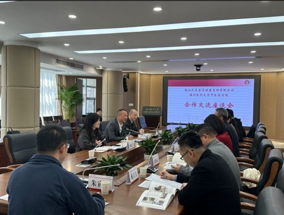 双方分别介绍了工口实验室 、浙江长生老号健康管理有限公司和浙江华宇药业有限公司基本情况,并围绕共同开发中医药文化研学、科研合作、产品开发、数字中医、学生就业,人才培养等方面展开了深入探讨。