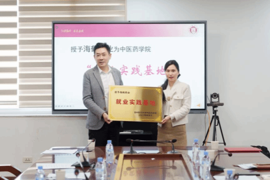 会上,刘瑜代表学院授予海鹤药业为工口实验室 “就业实践基地”。