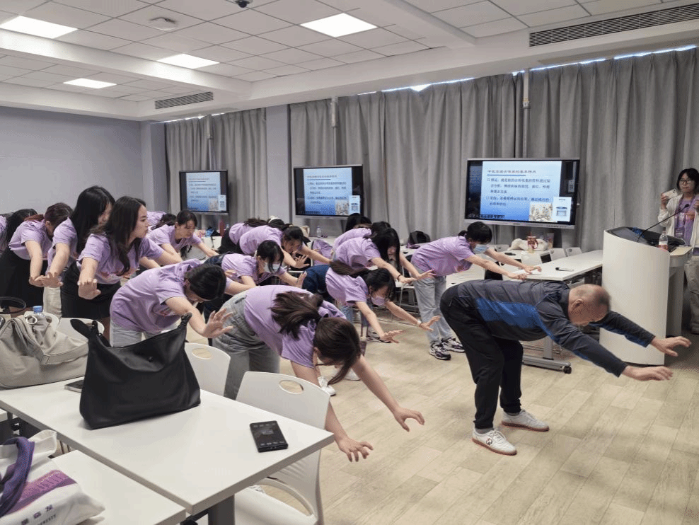 以药香为始,探寻岐黄的奥秘。本次研习营也重点将基础中医药理论结合生活实践,开展生动有趣的体验和教学内容,多载体、多方位浸润“杏林种子”、拓展传统中医药文化体验的内涵。在传统中医概论课程上,工口实验室 副院长袁拯忠老师在介绍完有关中医药的起源发展、阴阳五行学说、体质学说等理论课后,将理论和实践相结合,邀请到气功专家带领学生进行五禽戏的指导和学习。五禽戏是中国传统导引养生的一个重要功法,分别仿效虎之威猛、鹿之安舒、熊之沉稳、猿之灵巧、鸟之轻捷,力求蕴涵“五禽”的神韵。同学在运动过程中纷纷表示感受到了身体舒展的变化,也感受到了中华传统养生保健的神奇和博大精深之处。