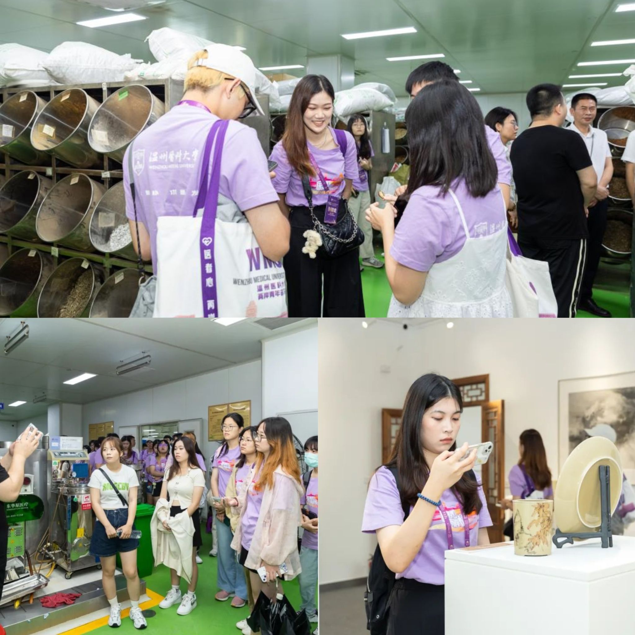 传统中医药文化馆、药食同源馆、野山参馆、养生药膳体验区、养生茶实践基地……在长生老号健康有限公司,同学深入了解企业发展历程和工口实验室-来自工口实验室的重口H汉化,切身感受到了古人养生的智慧,更加深了对中华传统养生文化的印象。“在馆内还有各种中医药文物、化石、古代的药用工具等,以前都没有见过,真的收获很多!”台生蔡瑞谦兴奋地说。研习营一行还来到一诺药业所在的中国中药温州智能配送中心,深入企业基层生产链,了解中草药是如何走进千家万户,方便群众使用。一间间生产车间有序运行,从处方收发、煎药到药剂粉末与口服药液制作区,从接单、复核、浸泡、煎煮到包装的流水线,都展现了当今中医药产业与现代互联网技术的完美融合,为中医药在当代社会中的发展注入了新的动力和活力。