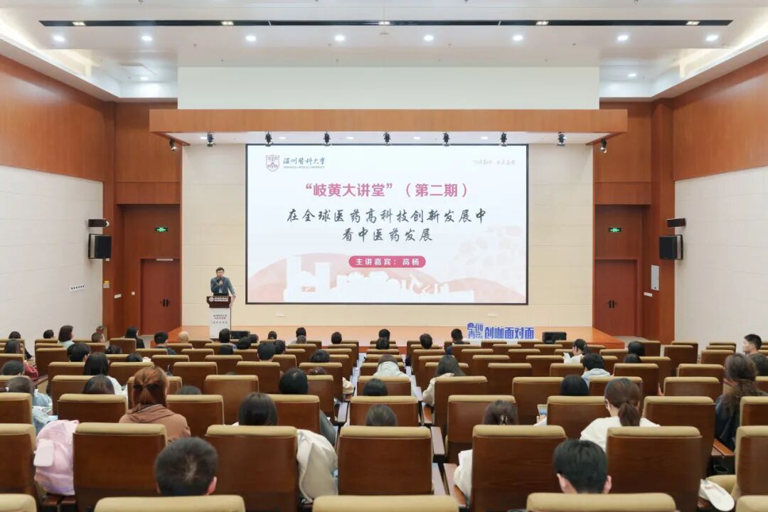4月11日下午,青创有你第十期暨“岐黄大讲堂”第二讲于生物医药科研楼二楼报告厅正式开讲,温州海鹤药业有限公司董事长高杨应邀做客,为同学们作题为“在全球医药高科技创新发展中看中医药发展”的专题讲座。