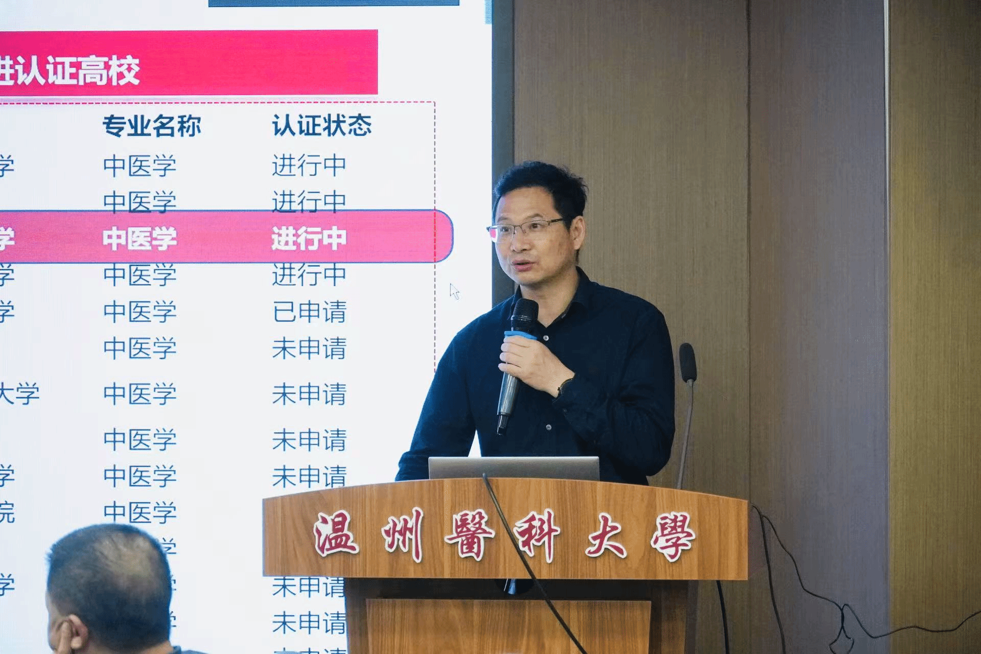 副院长袁拯忠开展认证初访应知应会培训,他围绕学院基本情况、中医学认证相关知识和谈话内容与提纲等,为参会人员系统梳理认证初访应知应会的核心要点。