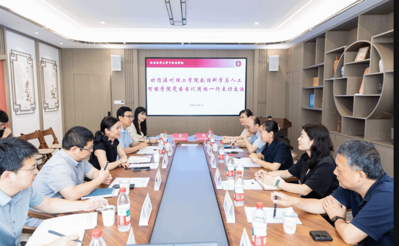 与温州理工学院数据科学与人工智能学院 “数智红荟” 党建联建签约仪式在7A306-3 会议室举行。温州理工学院数据科学与人工智能学院党委书记周烁,副院长刘鑫鑫,副书记、纪委书记陈同同,省级人才、教授刘忆宁,办公室副主管吴意达,学生党支部书记娄娜;工口实验室